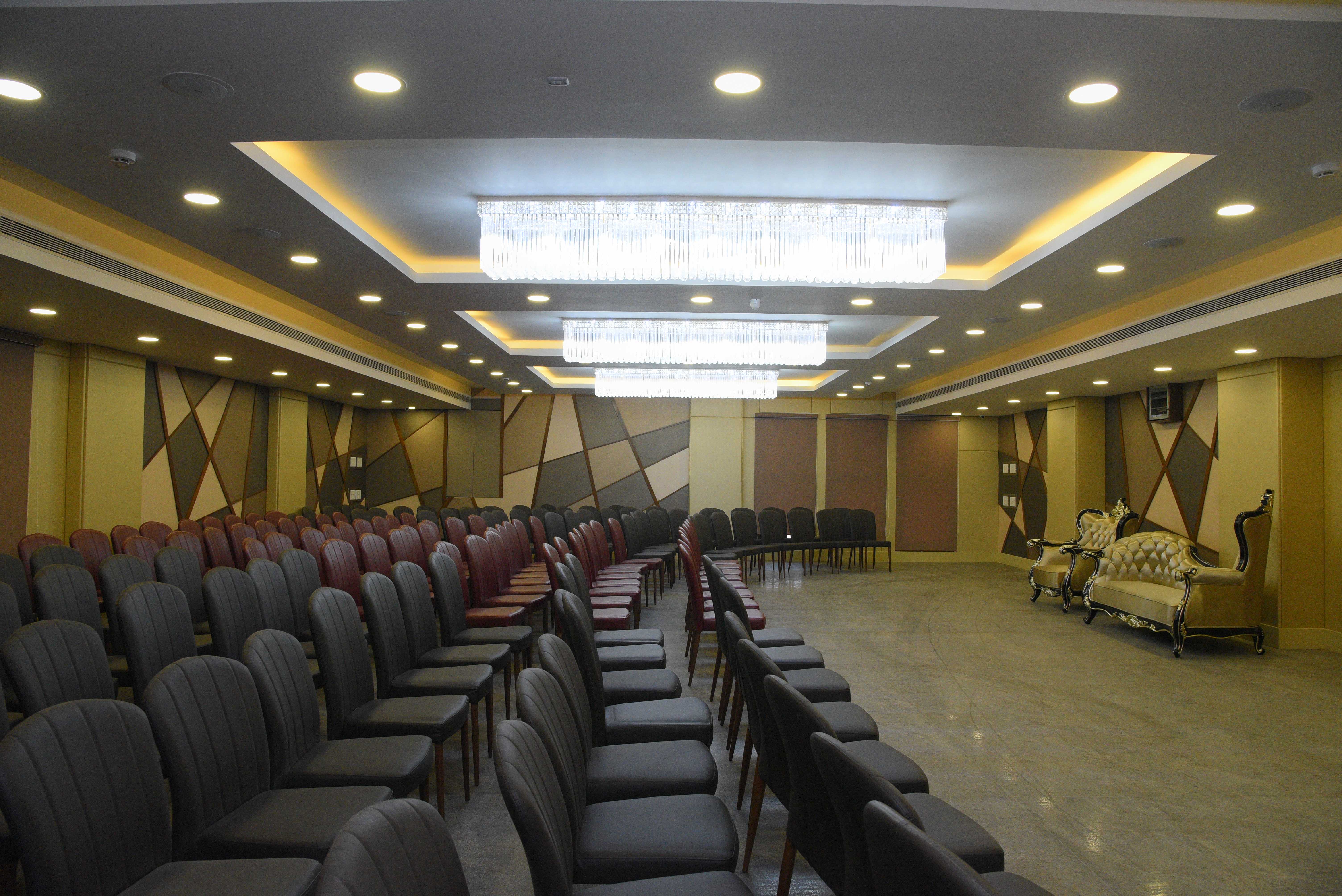 From Reception to Engagements,private parties to family gatherings, product launches to conferences , our DK mini hall assures your every need with an area to accommodate up to 200 guests in theatre style and 500 floating guests. It is the right articulation of space and utility and has alluring ambience with state of the art amenities , acoustic panels , extensive audio support making our compact hall the perfect choice for all your special occasions!